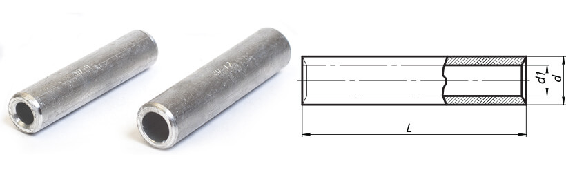 Гільзи кабельні з’єднувальні алюмінієві, що закріплюються опресуванням, призначені для з’єднання проводів та кабелів з алюмінієвими жилами Перетином від 10 до 300 мм2 на напругу до 10 кВ. Вироблено згідно ДСТУ 23469.2-79.