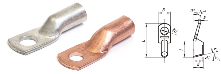 | Марка | Перетин, мм2 | D | d | d1 | B | S | L | lmin | Вага 1000 шт., кг, не більш |