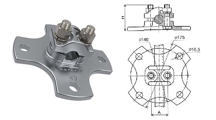 Затискачі опорні типу АА забезпечують кріплення на колонках ізоляторів одного порожнього алюмінієвого, сталеалюмінієвого чи мідного проводів при ошиновуванні відкритих розподільчих пристроїв підстанцій високої напруги. При монтажі затискачів АА шинні опори слід встановлювати таким чином, щоб отвори кріплення ізоляторів і затискача були розташовані попарно симетрично осі проводу.