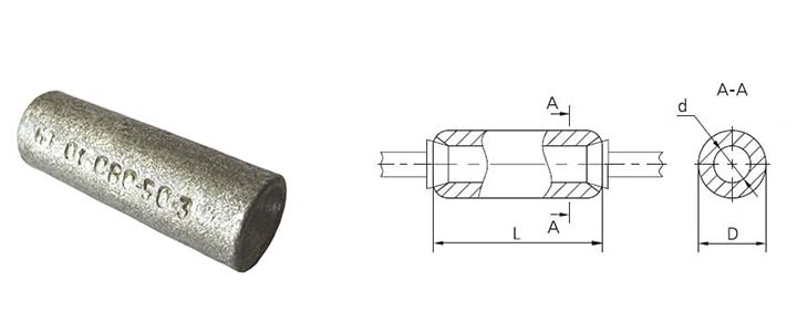 Конструктивно є сталевою трубкою овального перерізу. Кінці каната в затискач вводяться «внахлест», після чого проводиться опресування затискача з овалу в коло.